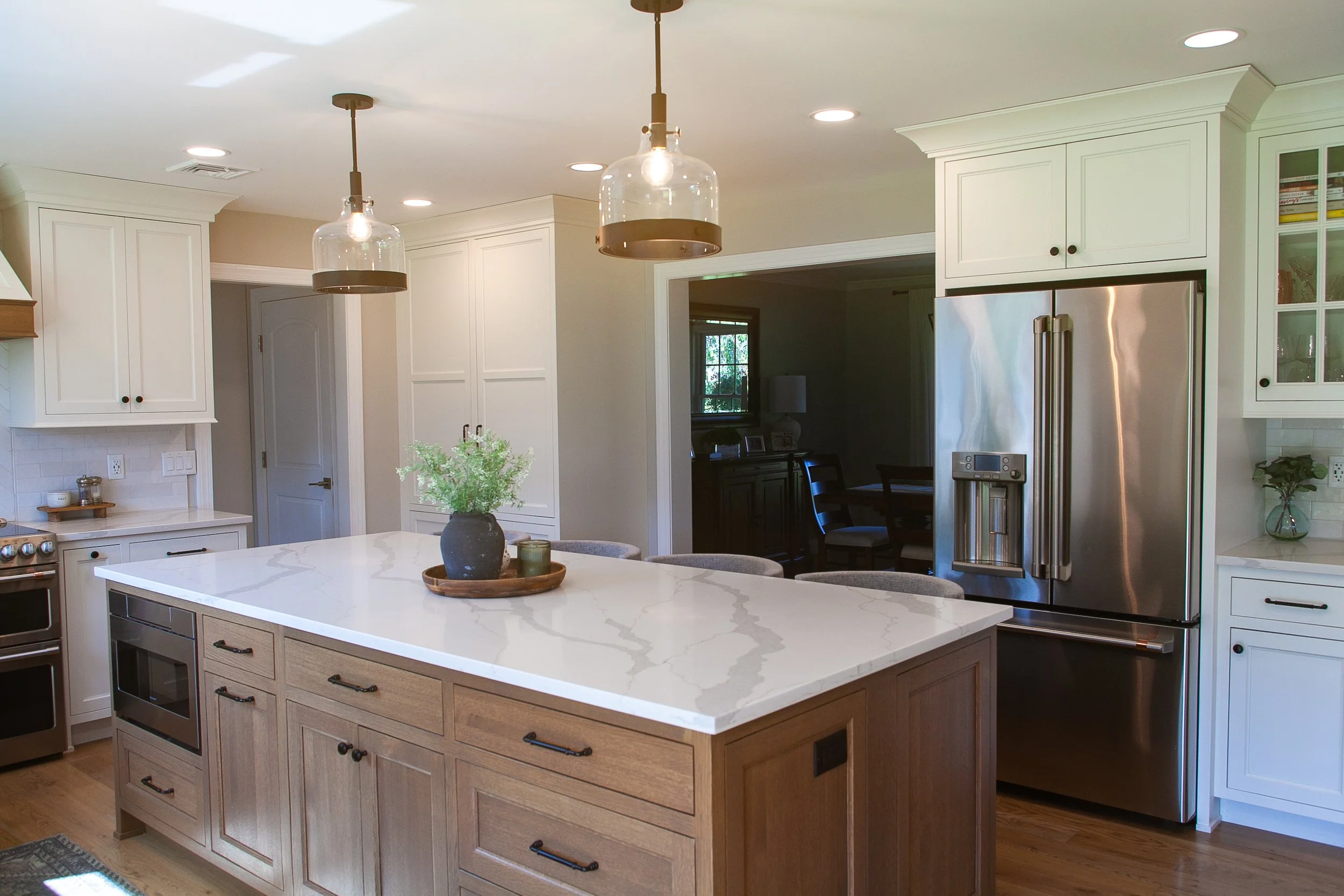 After many years of planning and dreaming, these empty nesters were ready to renovate their kitchen and dining space to be more open and welcoming for their grown children and grandchildren. By removing the wall between kitchen and dining, the space was opened up for better workflow, whether its just the two of them, or if they’re in there baking with the grand kids.